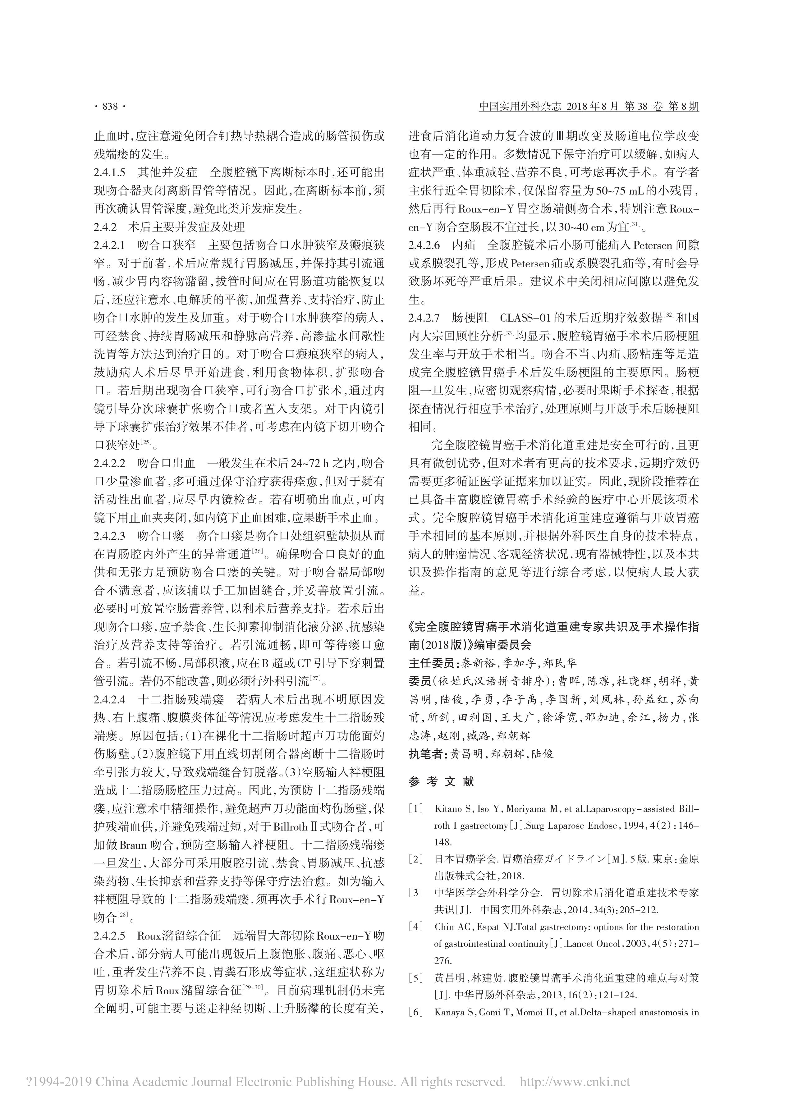 完全腹腔鏡胃癌手術(shù)消化道重建專家共識(shí)及手術(shù)操作指南(2018 版)